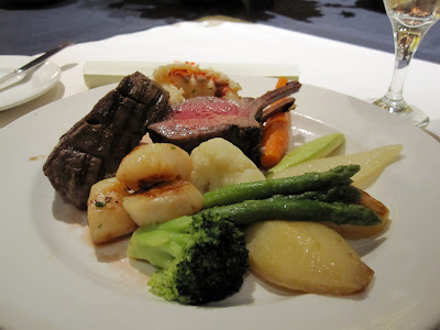 The next course was steak, lamb, lobster tail, scallops…it was amazing and served with a smooth red wine.