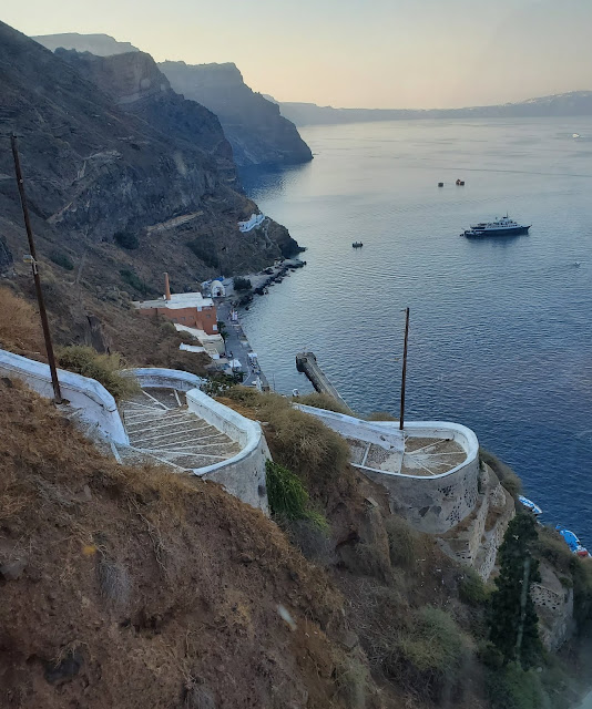 So here is where I really missed my camera and zoom lens. The phone just doesn't cut it for that purpose. The zig-zaggy line is the path the donkeys (and humans, if you choose) walk up and down. Most people take the cable cars.