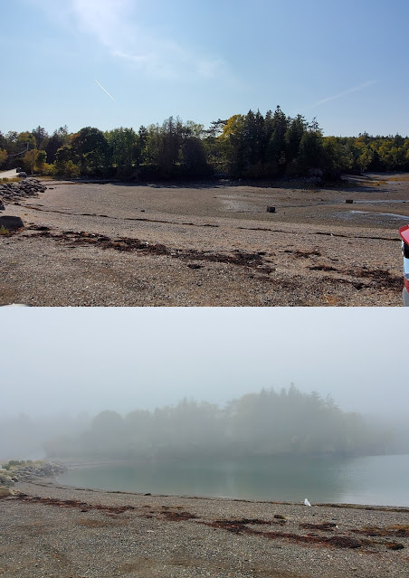 Before we left Saint Andrews that morning, we headed down to see the difference in the tide going to Ministers Island. It was pretty foggy.